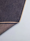 De raw denim verandert tijdens het wassen: de originele kleur wordt intenser en de textuur wordt zachter, waardoor het natuurlijke karakter van de stof nog beter tot zijn recht komt. Op de foto zie je de raw denim met daarbovenop een gewassen stuk.