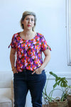 Easy peasy is ontworpen voor geweven stoffen zoals viscose. Het is een must have in elke garderobe die goed matcht met je zelfgemaakte rokken, shorts of broeken. Het patroon biedt twee opties voor de hals: een ronde (afgewerkt met biais of een beleg) en een v-hals (afgewerkt met een beleg). Het patroon biedt een mooie afwerking voor de mouwtjes – een kleine strik – voor een mooie een vrouwelijke look.