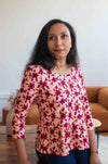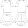 Een jersey t-shirt met mooie details en meerdere opties: mouwen met ruches, peplum, een knoopsluiting aan de achterkant. Genoeg om je ideale T-shirt te creëren, van het eenvoudigste tot het meest uitgebreide voor een veelzijdige en persoonlijke stijl.