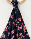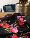 Ruby is een bloemrijke viering waarbij felrood en roze samensmelten op een diepe, intense zwarte achtergrond. Het geeft elke creatie een opvallend contrast. De stof heeft een vloeiende val en voelt heerlijk zacht, ideaal voor tijdloze en uitgesproken vrouwelijke ontwerpen. Perfect voor het maken van blouses, jurken, broeken, jumpsuits... noem maar op!