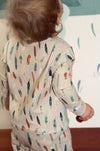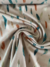 Prachtige kwaliteit katoen tricot / jersey in dessin Heather & Feathers Dim uit de Capsule Campsite collectie van Art Gallery Fabrics. De stof is heerlijk zacht, Oeko-Tex gecertificeerd en perfect voor allerlei toepassingen zoals shirts, sweaters, jurkjes en kinderkleding.